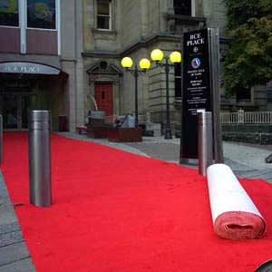 Laying out the red carpet in preparation for the night's Induction Gala. (Monday, November 4, 2002 - Scott Veber)