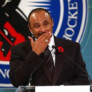 Goaltender Grant Fuhr gets emotional while recounting the support he received during his career. (November 3, 2003)