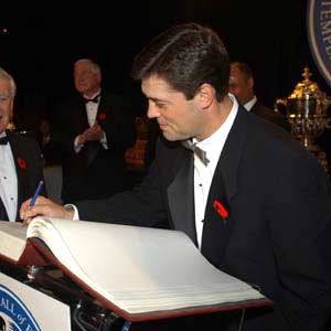 Pat LaFontaine follows suit by also signing the Honoured Member book. (November 3, 2003)