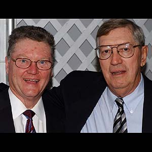 Builders both, Brian Kilrea and Al Arbour were members of the New York Islanders' coaching staff together and picked up on their long-time friendship at the 2005 Induction Ceremony. (A.J. Messier/HHOF)
