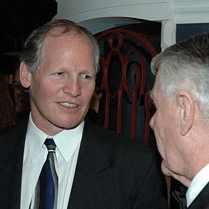 Mark Napier, the president of the NHL Alumni, chats at the gala reception with old friend and broadcaster Dick Irvin. (Scott Veber/HHOF)