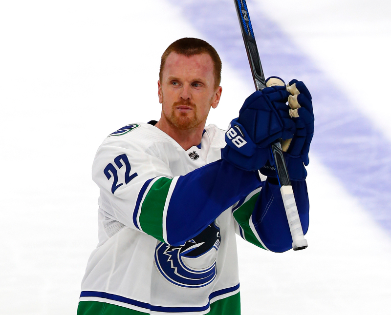 Sedin salutes the crowd after playing his final game for Vancover. (Perry Nelson/HHOF)