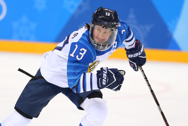 Riikka Sallinen helped lead the Finns to a bronze at her final Olympic Winter Games in 2018. She became the oldest player to ever win an ice hockey medal at the Games. (Andre Ringuette/HHOF‐IIHF Images)