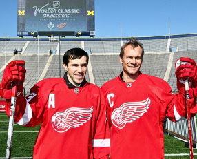 Niklas Lidstrom and Pavel Datsyuk at the 2014 NHL Winter Classic at Michigan Stadium. (HHOF)