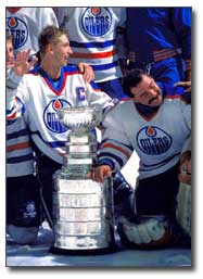 | Wayne Gretzky and Grant celebrate one of their many Stanley Cup championships. |