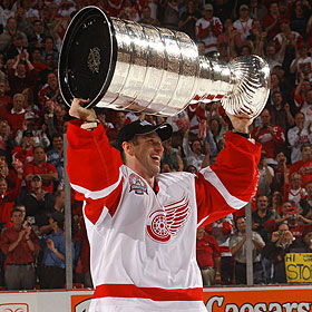| Hasek was a member of two Stanley Cup championship teams with the Red Wings in 2002 and 2008. |