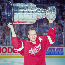 | Lidstrom was a member of four Stanley Cup championship teams with the Detroit Red Wings in 1997, 1998, 2002 and 2008. |