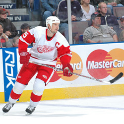 For the last six seasons of his career, Lidstrom captained the Red Wings, replacing the legendary Steve Yzerman upon his retirement. He holds several Red Wings' franchise records, including games played by a defenceman, most regular season goals, assists and points by a defenceman (264, 878 and 1,142), most playoff games (263), goals (54), assists (129) and points (183) by a defenceman. The Detroit Red Wings retired his number 5 on March 6, 2014.