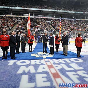 Official Honoured Member Blazer presentation prior to The Source For Sports Hockey Hall of Fame Legends Classic.