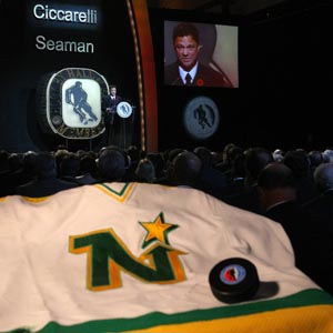 2010 Hockey Hall of Fame Inductee Dino Ciccarelli speaks at the podium after being inducted into the Hockey Hall of Fame.