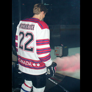 The first step of a wonderful tradition as Haley Wickenheiser takes to the ice. Wickenheiser and Angela Ruggiero were the first female hockey stars ever to compete in the Hockey Hall of Fame Legends Classic Game. (Nov-12-2006-Matt Mitanis/HHOF)