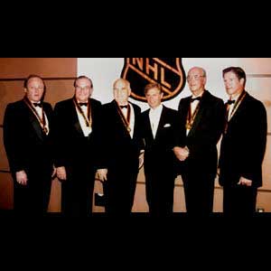 Gerry Cheevers, Rudy Pilous, John Mariucci, John Ziegler,