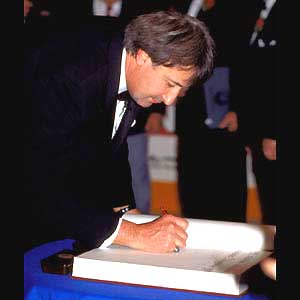 signs the Honoured Members' book