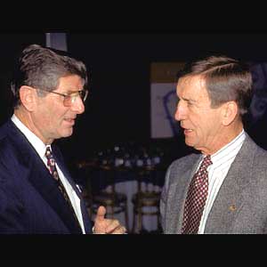 share a conversation at the 1995 Induction Gala