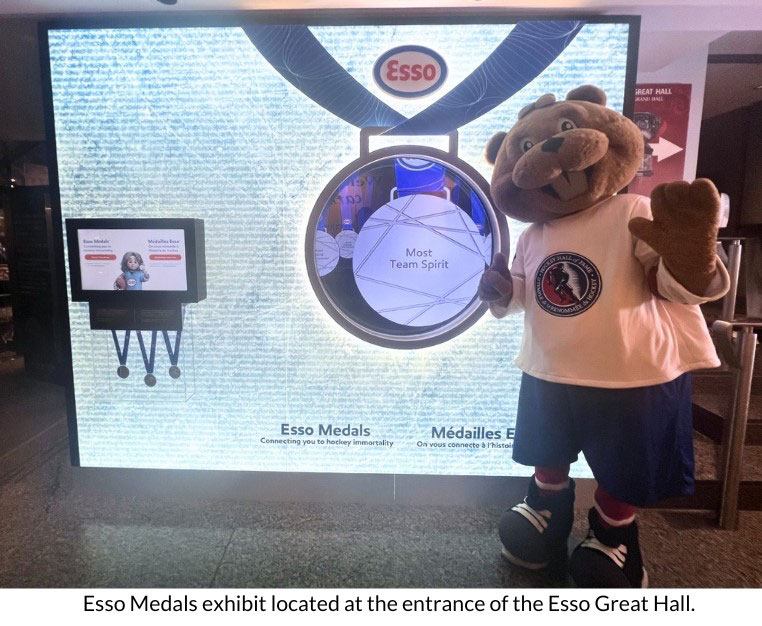 Located at the entrance to the Esso Great Hall (showcase at bottom of stairs), the recently unveiled Esso Medals Exhibit celebrates registered Esso Medal winners become a part of hockey history within an interactive display.