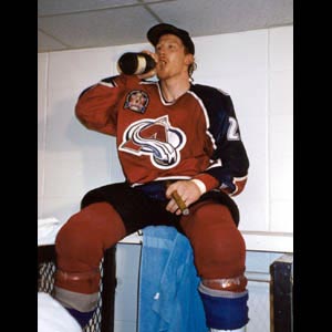 Mike Keane savours the rewards of a Stanley Cup championship after the Colorado Avalanche collected their first title on June 10, 1996. It was the second of three eventual celebrations for the grinding winger.