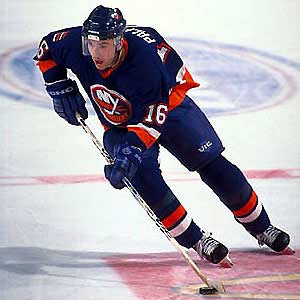 The Islanders Zigmund Palffy heads up ice