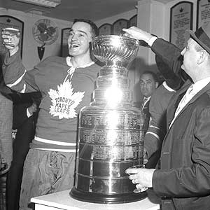 Frank Mahovlich toasting a Maple Leaf