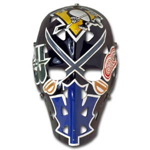 Al Smith used his mask to include each of the team logos he played for during his NHL career. (circa late 1970s)