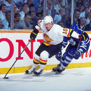 Vancouver's Pavel Bure skates away from Toronto's Mike Eastwood. (Chris Relke/HHOF)