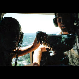 (August, 2004) While flying to Saint-Jerome, his hometown, Andre Roy proposed to his girlfriend of 3 1/2 years. She gladly said 'Yes,' and the newly-engaged couple was flying as high as the helicopter. (Walt Neubrand)