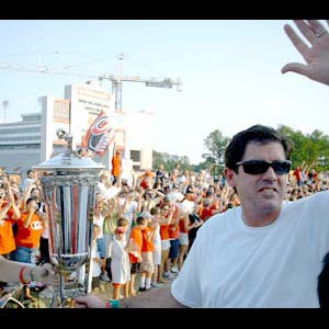 Although captain Rod Brind'Amour refused to touch it when originally presented by the NHL, now that the Stanley Cup is in the house, Coach Peter Laviolette and the Hurricanes had no problem exhibiting for fans the Prince of Wales Trophy as Eastern Conference champions.