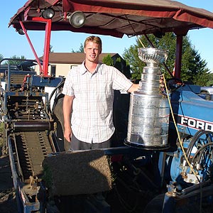 Eric Staal would do his Dad a great disservice if he didn't have his picture taken with the prized sod cutter of the family's