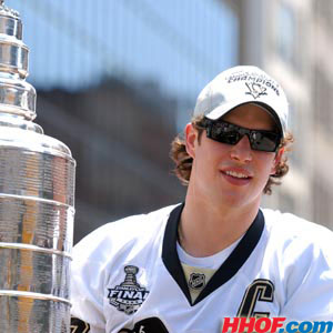 Sidney Crosby is all smiles with the Stanley Cup at his side. (Craig Campbell/HHOF)