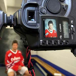 Free agent forward Greg Martin's image is displayed on camera LCD after posing for his official head shot. (Ian Goodall/HHOF)