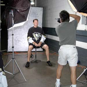 Hockey Hall of Fame inductee Mario Lemieux smiles as part of the annual training camp photography rituals. (Matt Polk/HHOF)