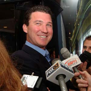 Mario Lemieux is all smiles after signing the Penguins first round draft pick Sidney Crosby. (Matt Polk/HHOF)