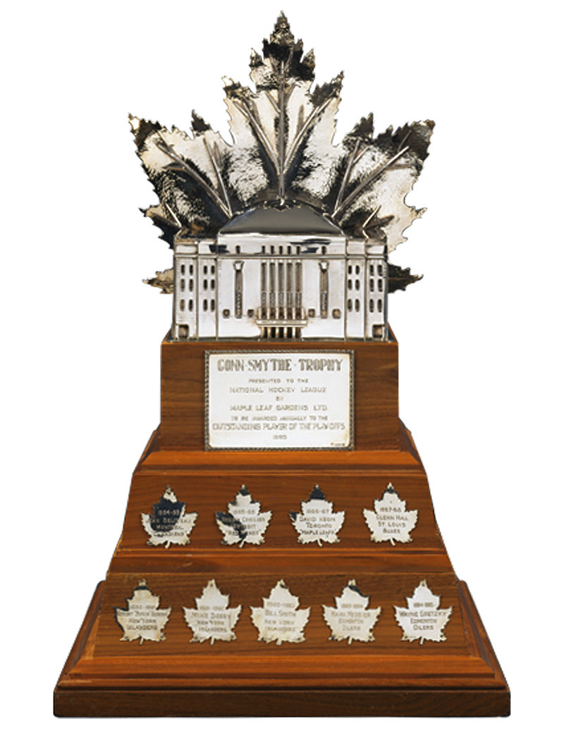 The Conn Smythe Trophy was fashioned to look like Smythe's beloved Maple Leaf Gardens, and was first awarded following the 1964-65 playoffs, with the inaugural presentation going to Montreal Canadiens' captain Jean Beliveau.