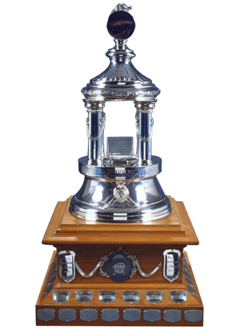Leo Dandurand, Louis Letourneau, and Joe Cattarinich, former owners of the Montreal Canadiens, presented the trophy to the National Hockey League in 1926-27 in memory of Georges Vezina, the outstanding goalkeeper of the Canadiens, who collapsed during an NHL game Nov. 28, 1925, and died of tuberculosis a few months later.